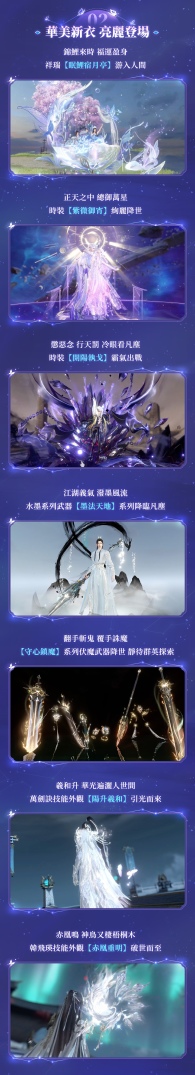 值得注意的是,雖為賽季最後一個小版本,但《秦時明月》的到來,僅是眾多聯動計劃的開端!更多神秘 IP 與驚喜聯名正緊鑼密鼓籌備中,將持續點燃熱潮。除聯動內容外,本次版本內容亮點不只「星河級時裝」、絕美外觀接連上新,更有開放免費兌換的俠緣情侶裝、「舞王挑戰」趣味活動,副本難度升級迎戰高手!帶來滿足玩家視覺享受、劇情體驗、輕鬆趣味、戰鬥爽感的多重饗宴。