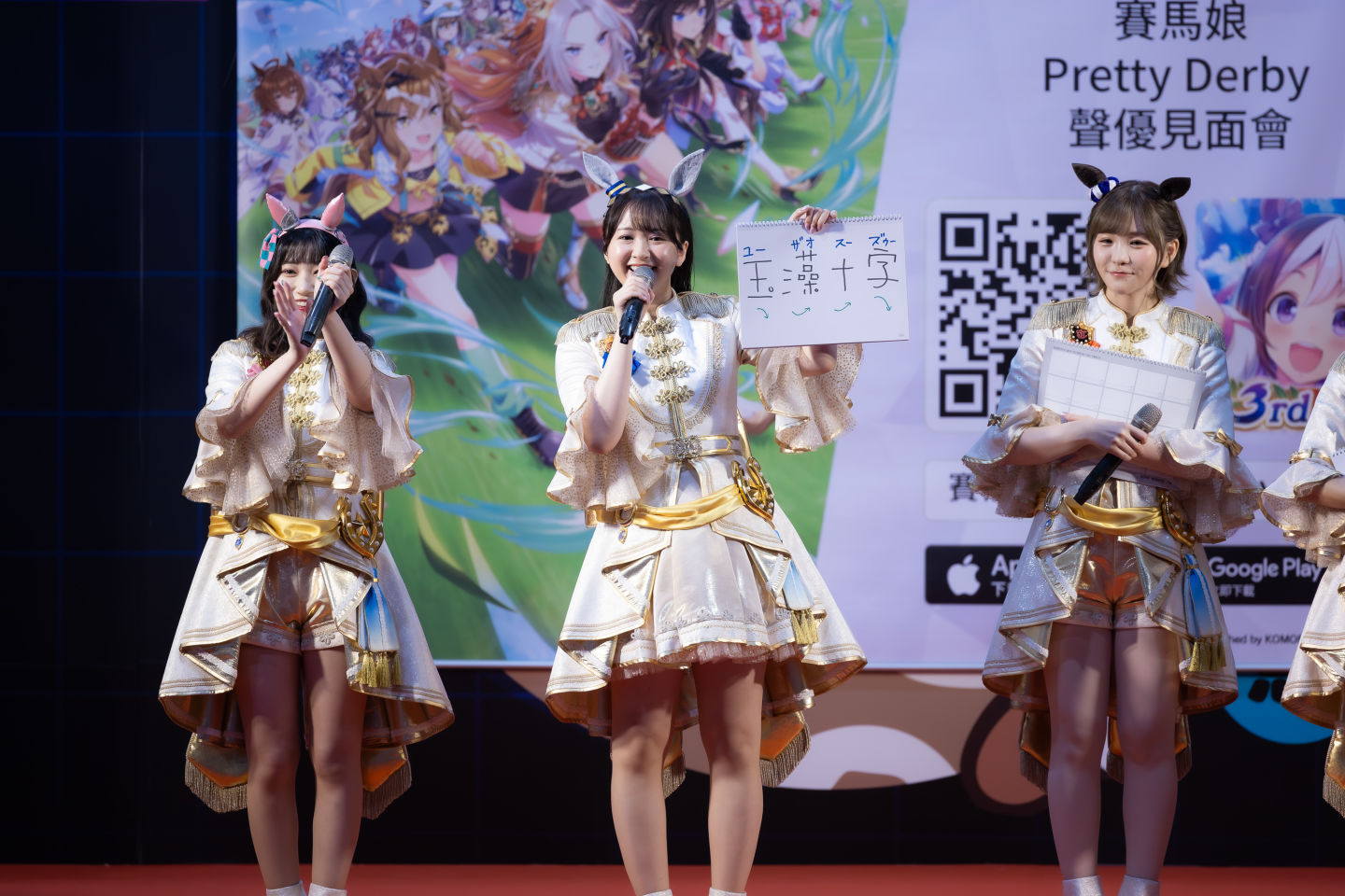 Cygames 超人氣跨媒體企劃《賽馬娘 Pretty Derby》近期在 Steam 推出國際版獲壓倒性好評,而在台灣繁中版邁入三週年之際,飾演賽馬娘小栗帽、神鷹、北部玄駒、緞通烈焰的四位日本人氣聲優在漫博首日帶來海外首場見面會& Mini Live。