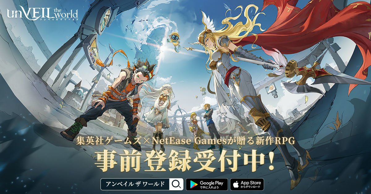 日本 Shueisha Games 集英社遊戲與中國 NetEase Games 網易遊戲預定在手機上推出的新作 RPG《unVEIL the world》(アンベイル ザ ワールド),自即日起在日本 App Store/Google Play 與官網展開事前預約讓玩家申請註冊。