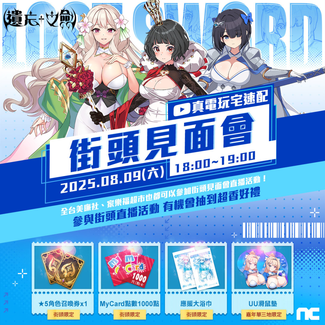 NC Taiwan 2D橫向捲軸手遊新作《遺忘之劍》,本週六(8/9)將於北中南三地舉辦街頭嘉年華與見面會。同時宣布 8 月 14 日將進行首次 Live 直播,並邀請人氣角色同歡。