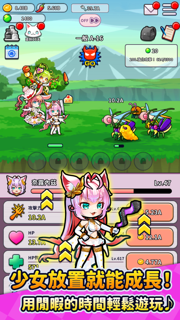 利用空檔時段輕鬆遊玩,放置型戰略 RPG!培育個性豐富又可愛的美少女,一起來打倒魔物吧!