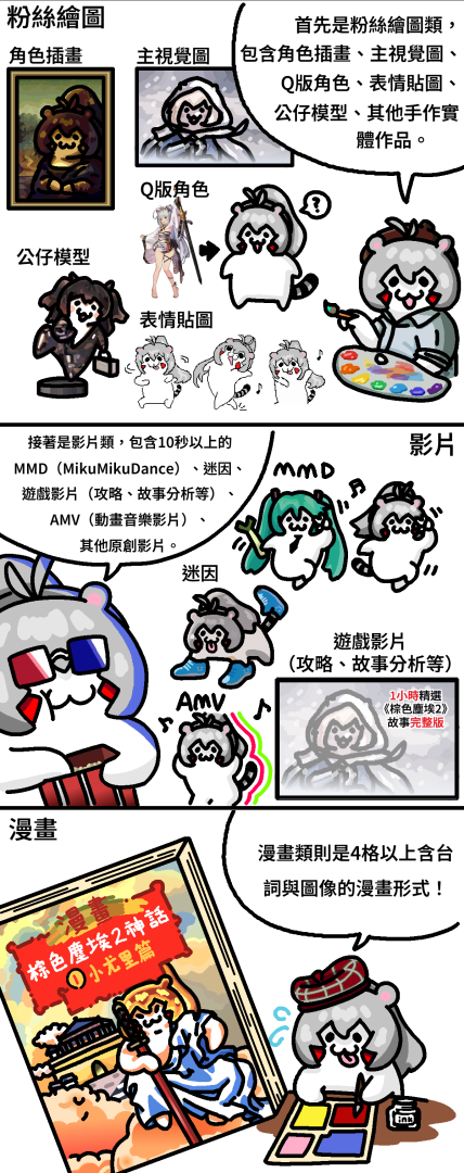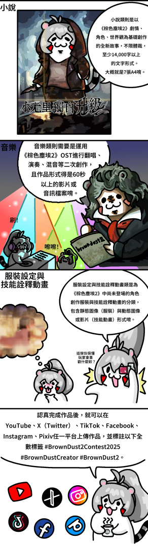 本次創作大賽開放給全球年滿法定成年年齡的玩家參與,參賽者需將以《棕色塵埃2》遊戲 IP 為主題的二創作品,上傳至指定社群平台(如 YouTube、X(原 Twitter)、TikTok 等),並填寫官方報名表單完成參賽。