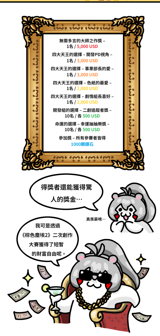 NEOWIZ 表示在《棕色塵埃2》迎接兩週年之際舉辦,是為了感謝玩家的熱情支持,並希望藉機讓全球玩家能以自己的創意延續對遊戲的熱愛,並以獨特的方式享受遊戲盛會。官方表示,《棕色塵埃2》憑藉持續的玩家溝通、服務優化與內容更新,不僅累積了龐大的粉絲群,更於今年 6 月在台灣、香港的主要 App 商店創下營收第一的佳績,同月日活躍用戶數(DAU)更突破 28 萬人,創下歷史新高紀錄。